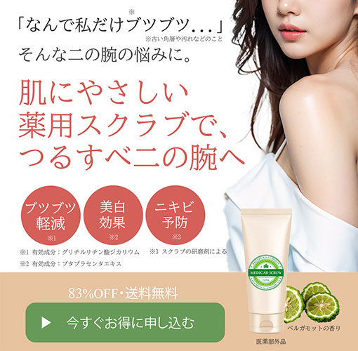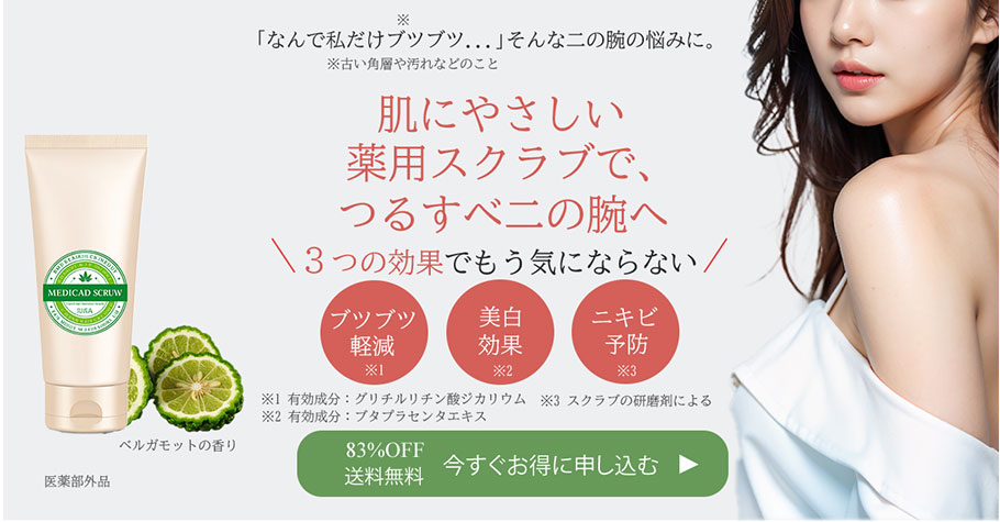 バナー2:薬用スクラブWeb広告 投稿日: 2025年11月30日2025年11月30日 投稿者: mariv 「二の腕ブツブツ」軽減を訴求した薬用スクラブのWeb広告バナーを制作。クラウドワークスのコンペにて採用されました。、PC版・スマホ版の2サイズを作成しています。 肌の質感が伝わるように、モデル写真の明るさ・色味を丁寧に調整 ターゲット(20代〜30代女性)に合わせた上品で信頼感のある色使い 商品特徴(3つのポイント)が一目で伝わる丸アイコンを配置 CTAボタンは安心感のある緑+わかりやすい訴求文言